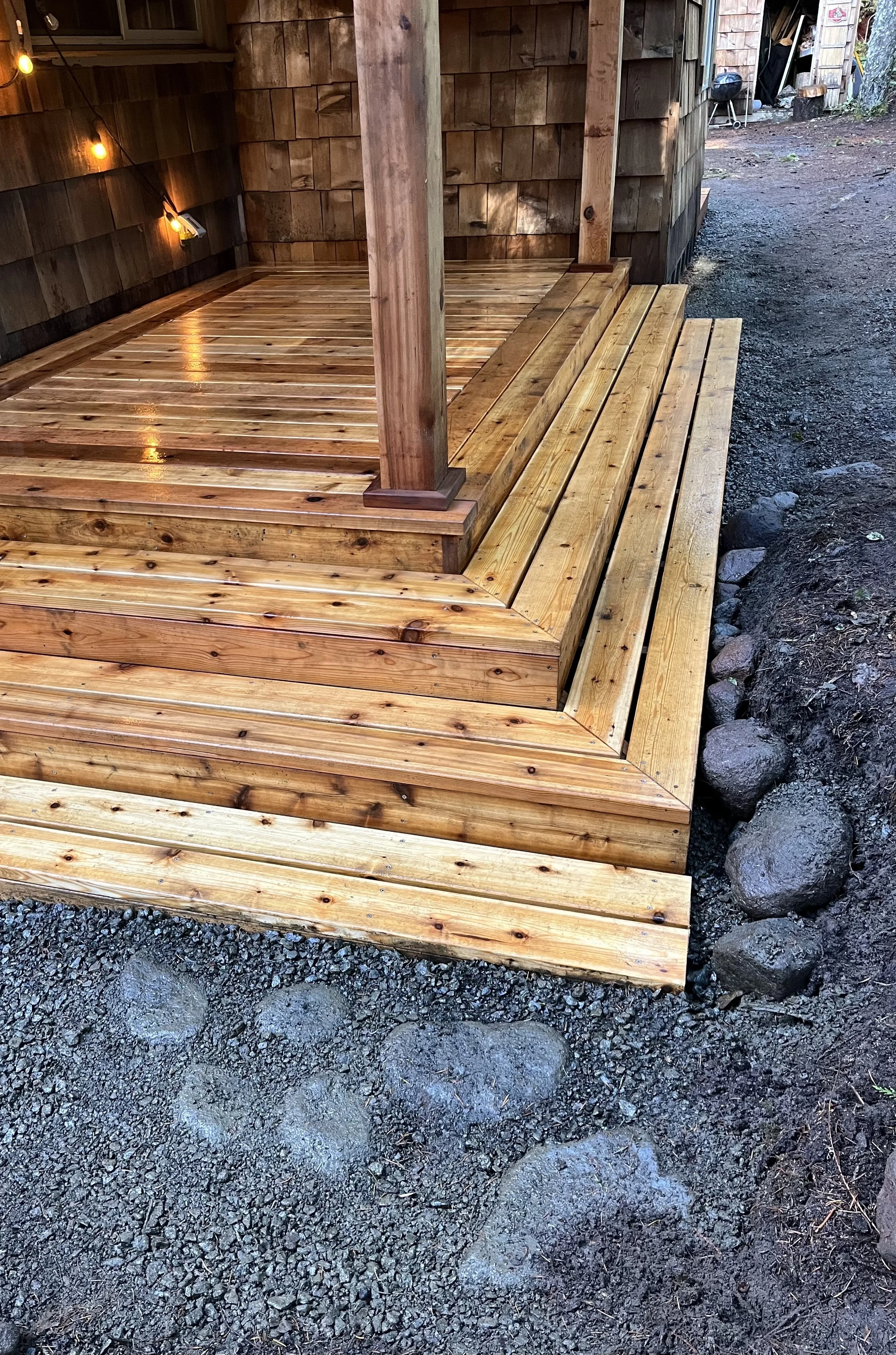 This custom horse mounting deck was made for R&R Horse Rescue in Sandy, Oregon. It is fully moveable and was built primarily out of restoration lumber.